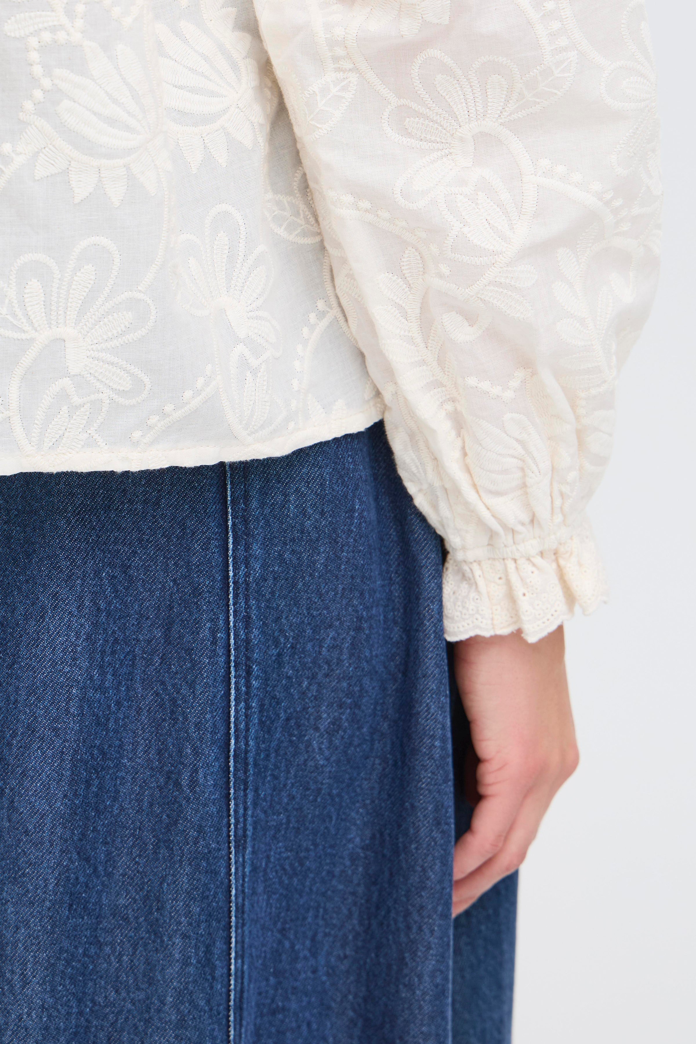 JOSE skjorte med broderi og flæser