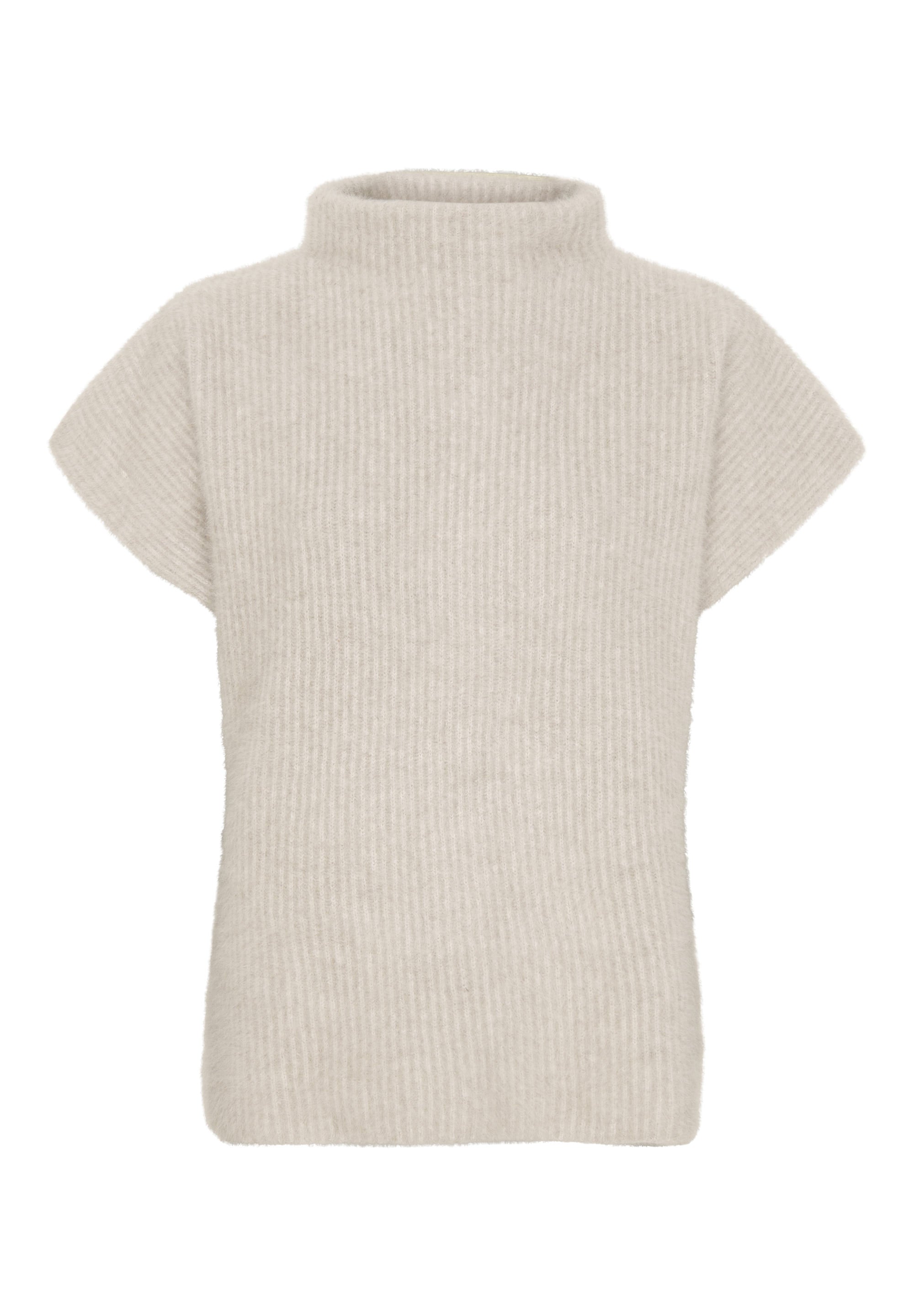 ISABELLE Pullover fra BTF CPH - Oplev den blødeste strik, lavet af en eksklusiv blanding af cashmere og vaskebjørns-garn. Blusen har en elegant lille høj hals og korte ærmer.
