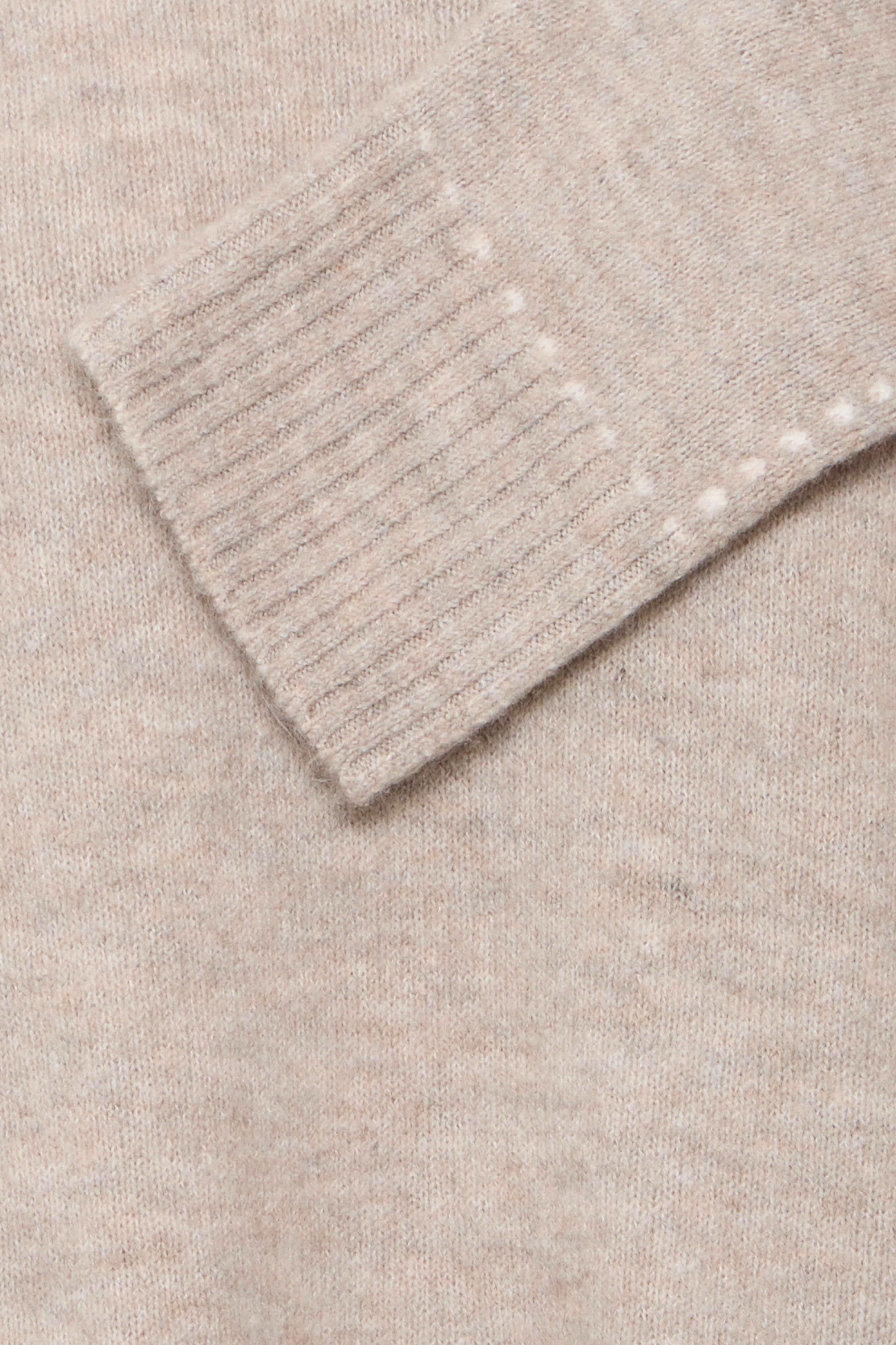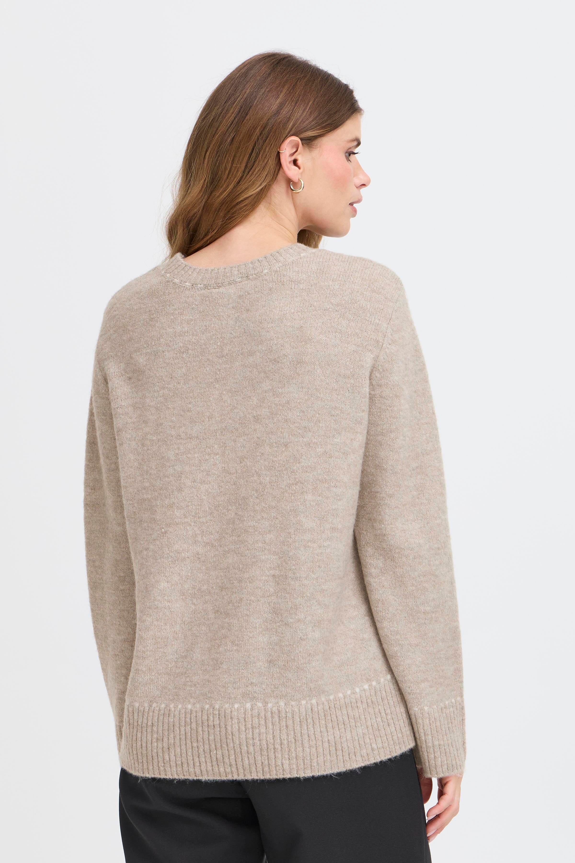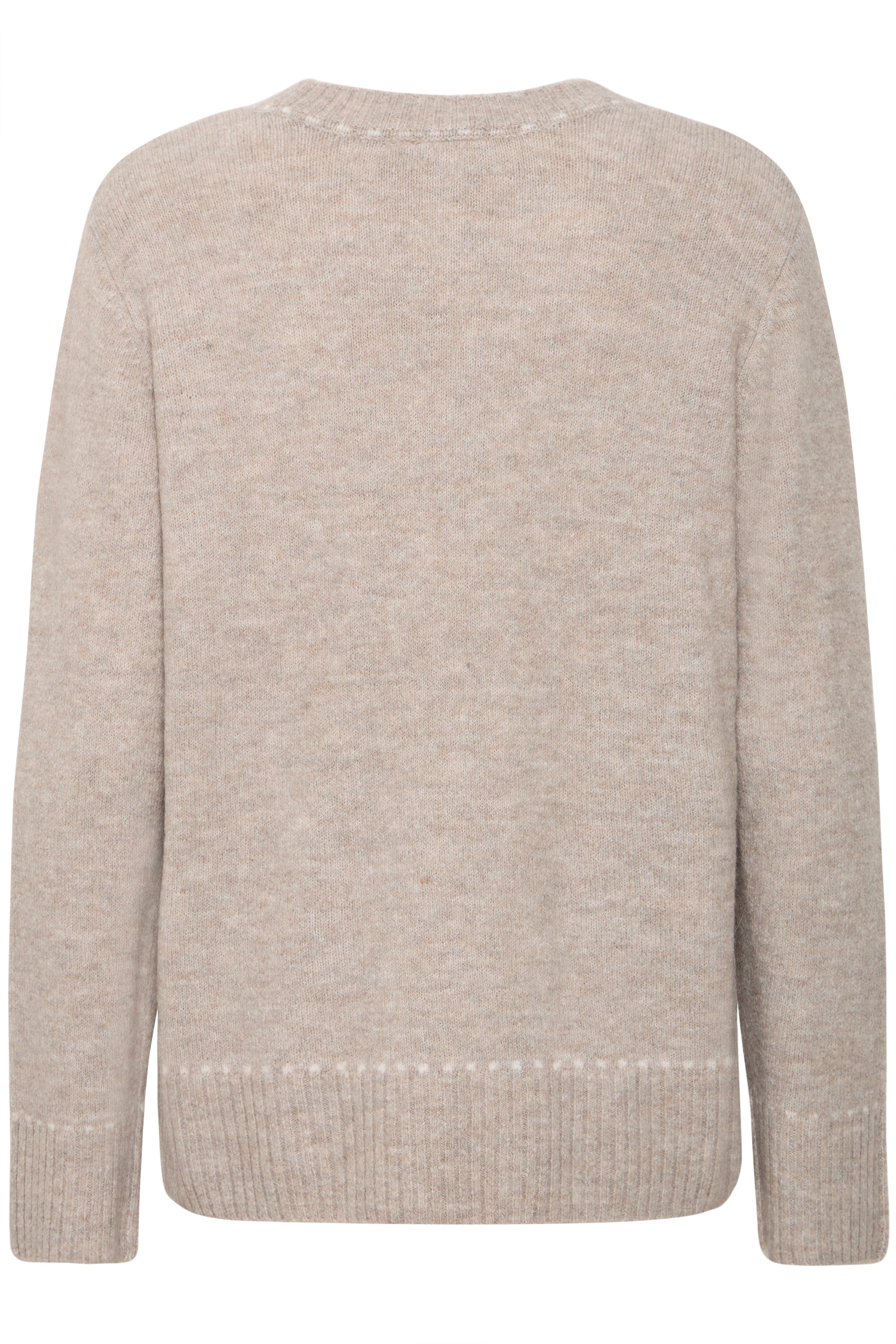 FRELISE pullover fra FRANSA er en stilfuld pullover er lavet af en blød og behagelig blanding af akryl, polyester og elastan. Den har en rund halsudskæring, lange ærmer og en afslappet pasform. Trøjen er prydet med fine sydetaljer omkring halsudskæringen og kanten, hvilket tilføjer et strejf af elegance til designet.