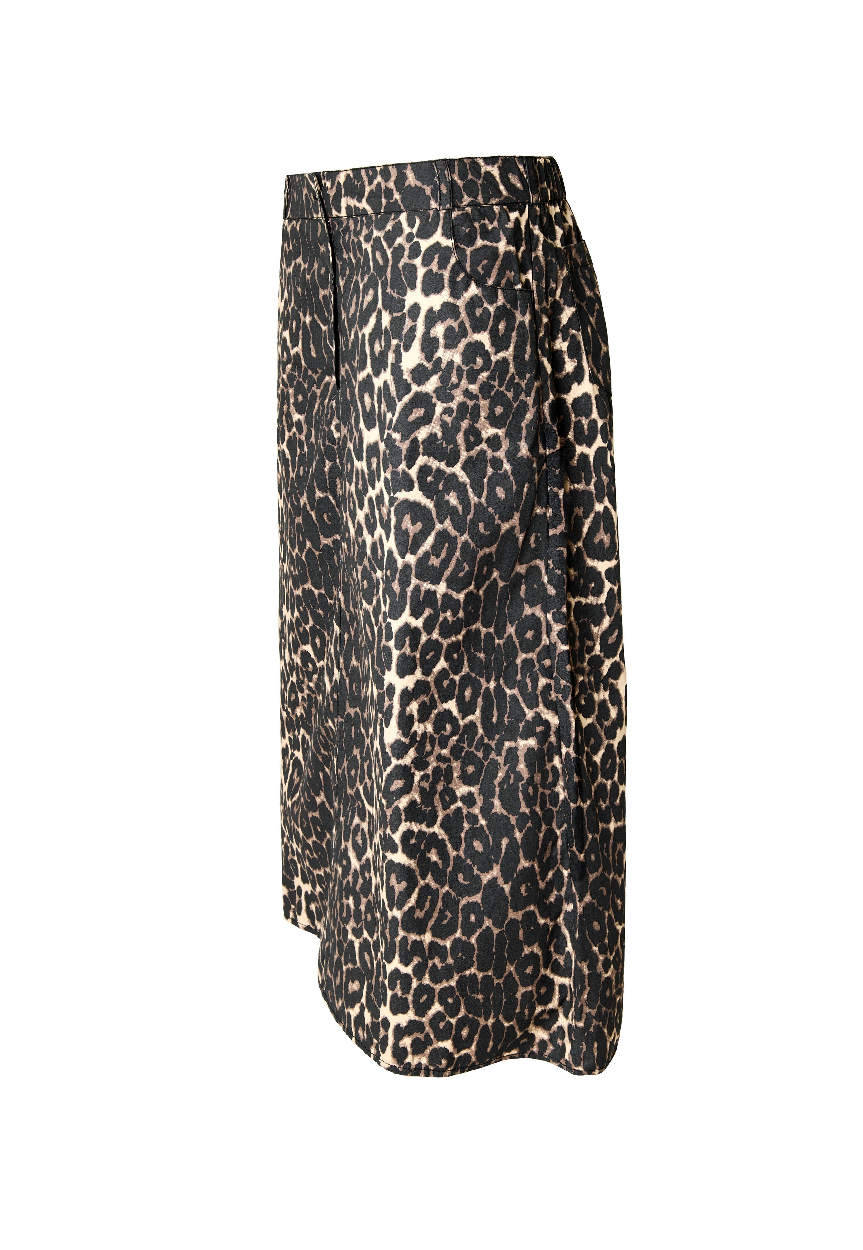 AMIRA nederdel fra OFELIA er med flot leopard print. Lukkes med knap & lynlås. Elastik på den bagerste del af livet. Nederdelen er med bæltestropper samt med stiklommer foran samt med baglommer. Let i bomuldskvaliteten dog ingen stræk i materialet.