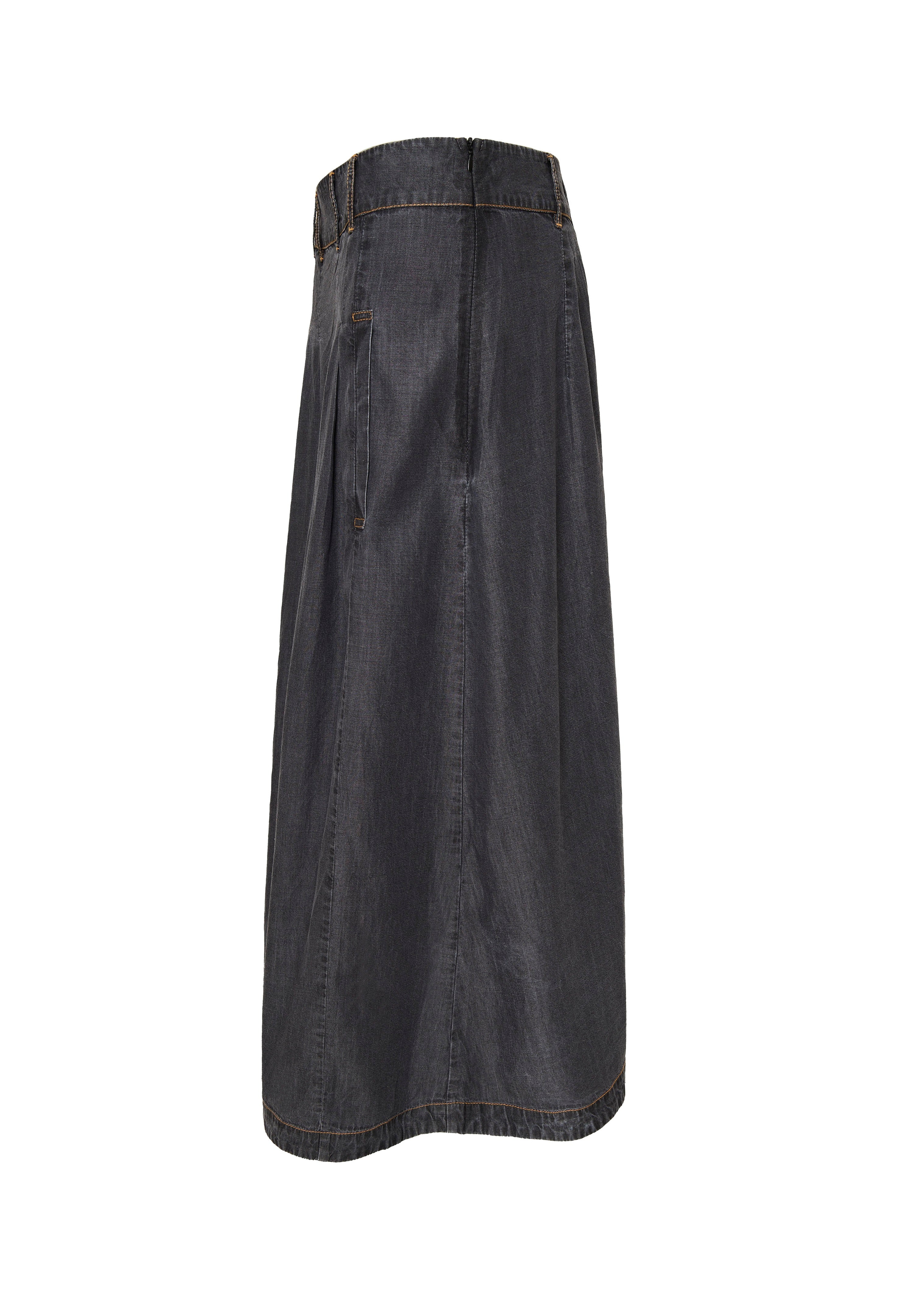 GILL SKIRT fra OFELIA er lavet i en blød og let shiny tencel-denim, der føles luksuriøs og behagelig mod huden. Materialet falder flot og giver både god pasform og et afslappet, moderne udtryk.