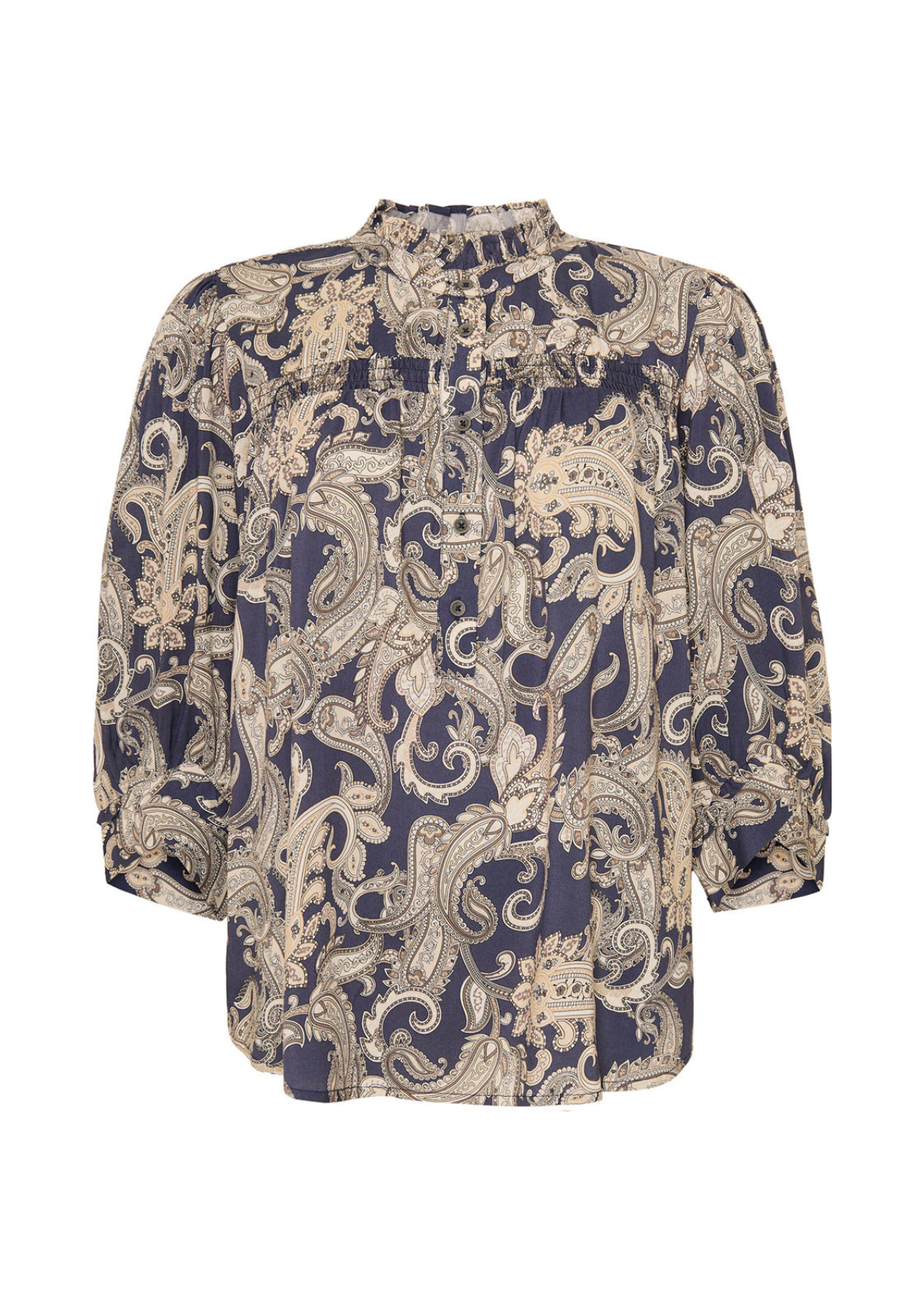 HONNY blusen fra OFELIA har let A-shape, stolpelukning foran og en behagelig elastisk smockdetalje over brystet, der giver en flot pasform. Den lille pynteflæse ved halsen fuldender det feminine udtryk. Et fantastisk item til både jeans, nederdele og shorts.