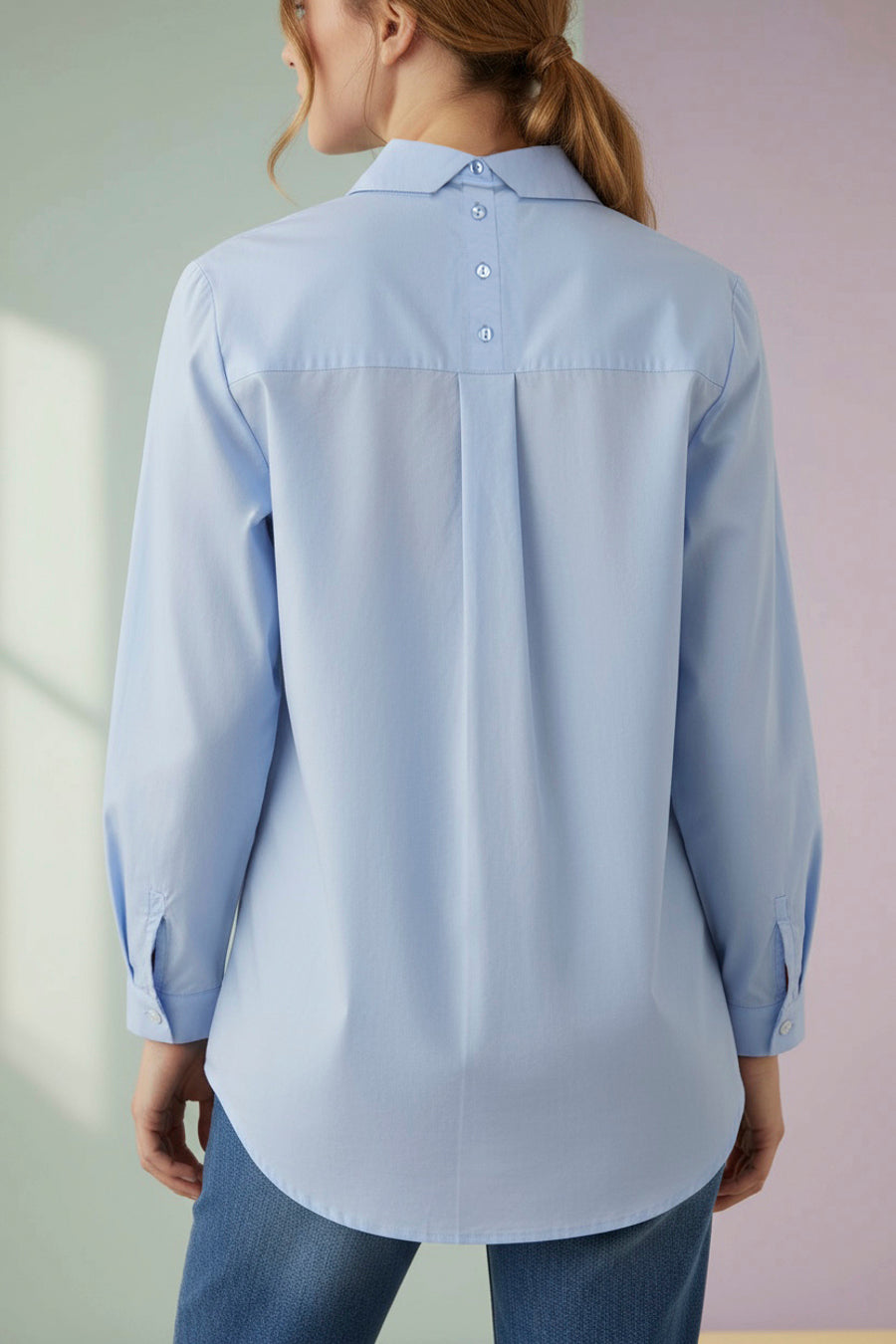 På ryggen er Martine skjorten designet med en dekorativ knaplukning øverst samt et diskret læg, der giver ekstra bevægelse og et smukt fald. Rygdetaljen tilfører skjorten et feminint og gennemtænkt udtryk, som gør den interessant – også set bagfra.Skjorten er nem at style og fungerer både lukket som klassisk skjorte eller let åben for et mere afslappet look.