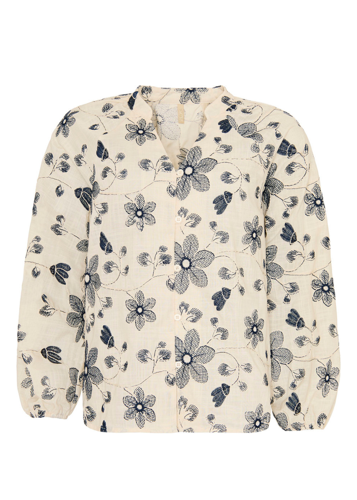 Ærmer afsluttes med elastik, hvilket giver et blødt og let puffet udtryk samt en behagelig pasform. Blusen er designet i et meget smukt Cream Combi-mønster, som tilfører et eksklusivt og forårslet look.