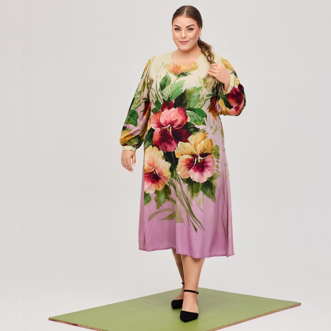 Elegant kjole fra NO. 1 BY OX i et let sommerprint, der udstråler lethed og femininitet. Kjolen har en rund halsudskæring med en diskret enkelt knaplukning i nakken. De lange ærmer tilføjer et elegant touch, mens bindebåndet i taljen giver mulighed for at tilpasse pasformen eller kjolen kan bæres løst uden bindebåndet for et mere afslappet look.