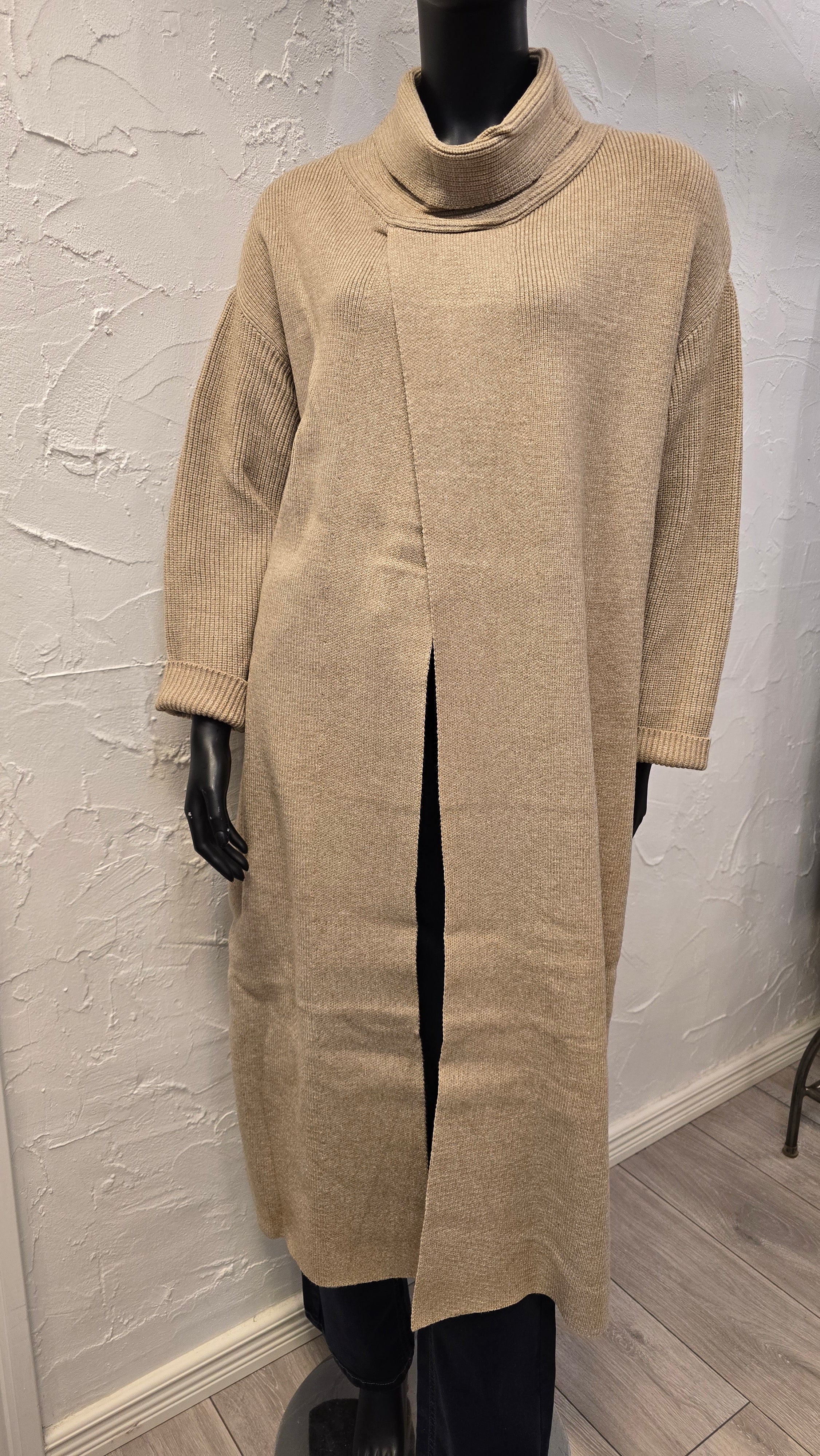 Denne lange cardigan-poncho fra NO. 1 BY OX er en blød og lækker luksuriøs lang strikket poncho, der tilføjer komfort og stil til dit look. Ponchoen er med slidser i begge sider samt åbning foran. Rulle krave og lange ærmer. Brug den som et ekstra lag udenover dit outfit.