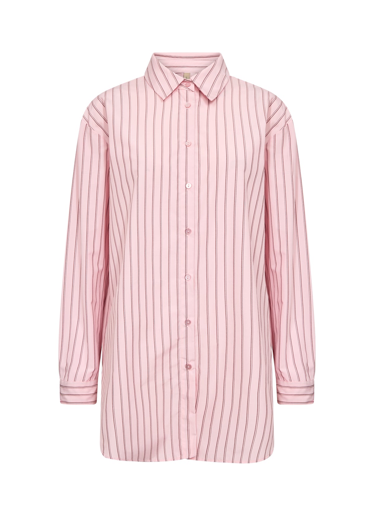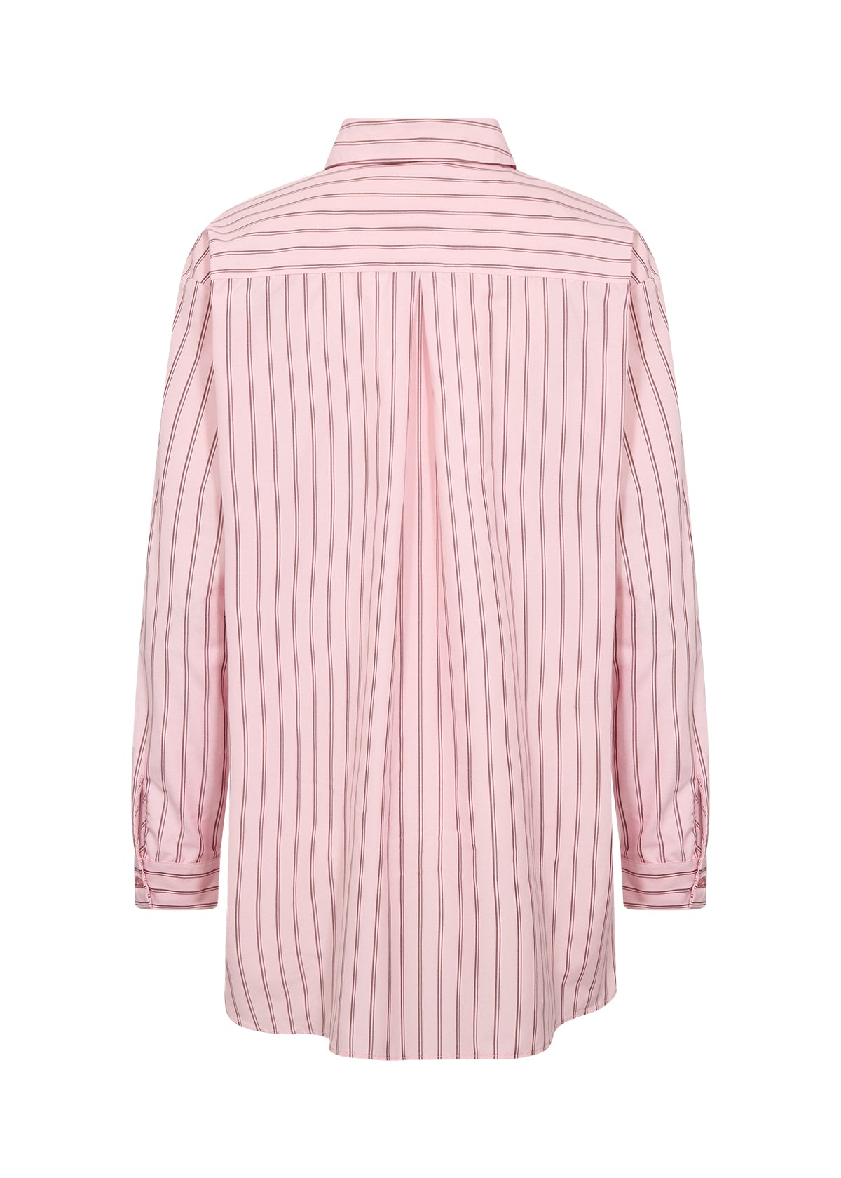 BARDOT 2 skjorte fra SOYACONCEPT er fremstillet af 53% genbrugspolyester og 47% økologisk bomuld. Den har en klassisk krave, knaplukning foran og et delikat lodret stribemønster med en længere længde.