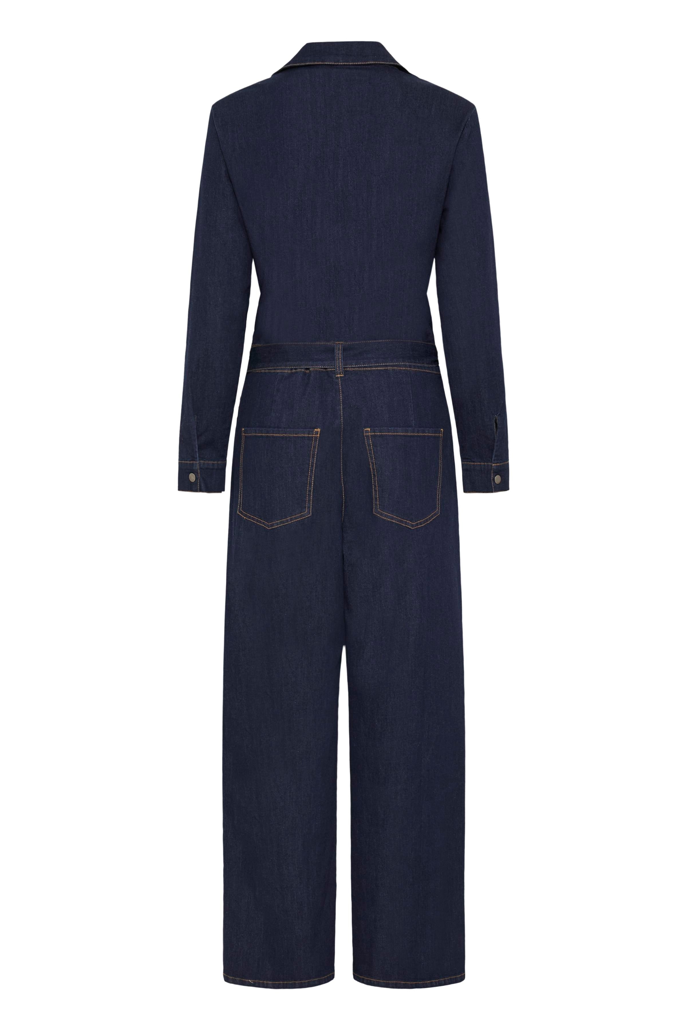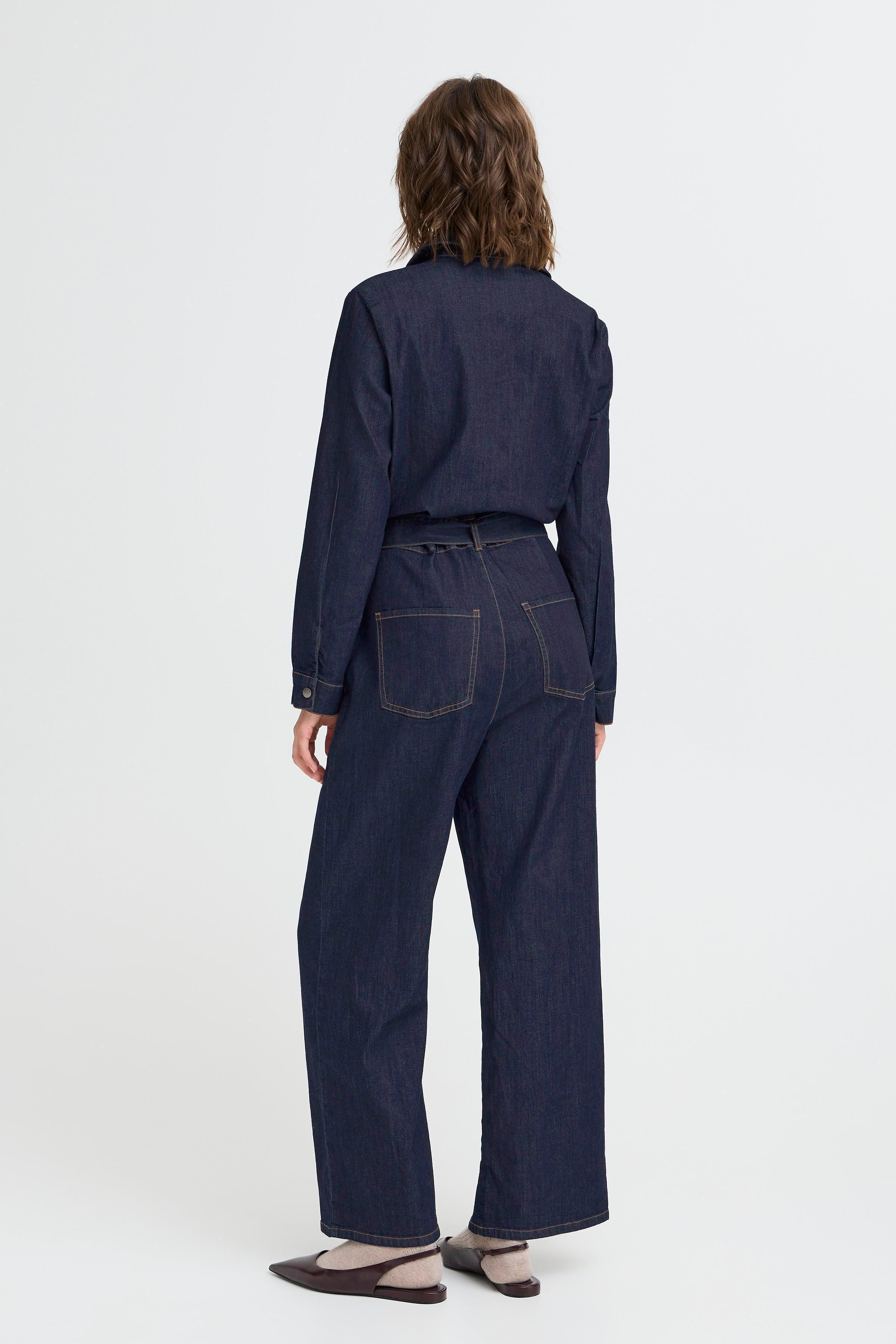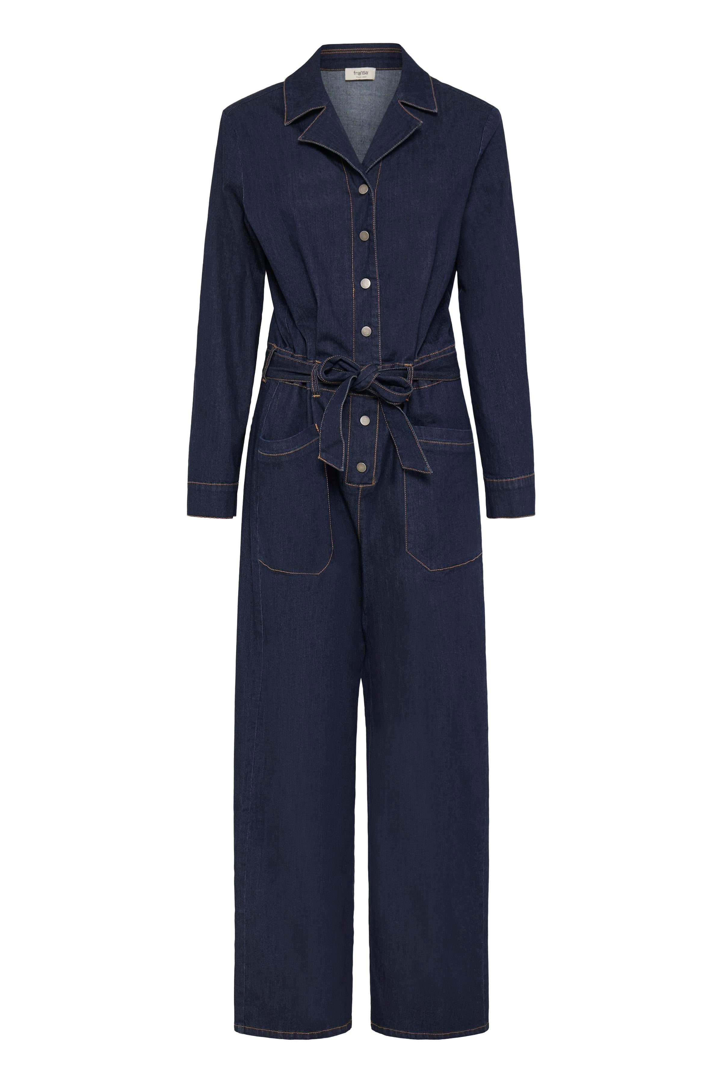 FRCHICAGO DENIM BUKSEDRAGT fra FRANSA er en stilfuld buksedragt i denim, der kombinerer klassisk design med moderne detaljer. Denne jumpsuit er fremstillet i et holdbart denim-materiale, der sikrer både komfort og stil til enhver lejlighed. Den langærmede stil giver et tidløst look, mens den elegante krave tilføjer et sofistikeret touch. Med praktisk knaplukning foran er det nemt at tage jumpsuiten af og på. De lige ben med vidde skaber en flatterende silhuet, og det medfølgende bælte i taljen fremhæver figuren. Lommerne tilføjer funktionalitet uden at gå på kompromis med designet. De iøjnefaldende kontrastsyninger giver et unikt og interessant udtryk, som gør denne buksedragt til noget særligt.