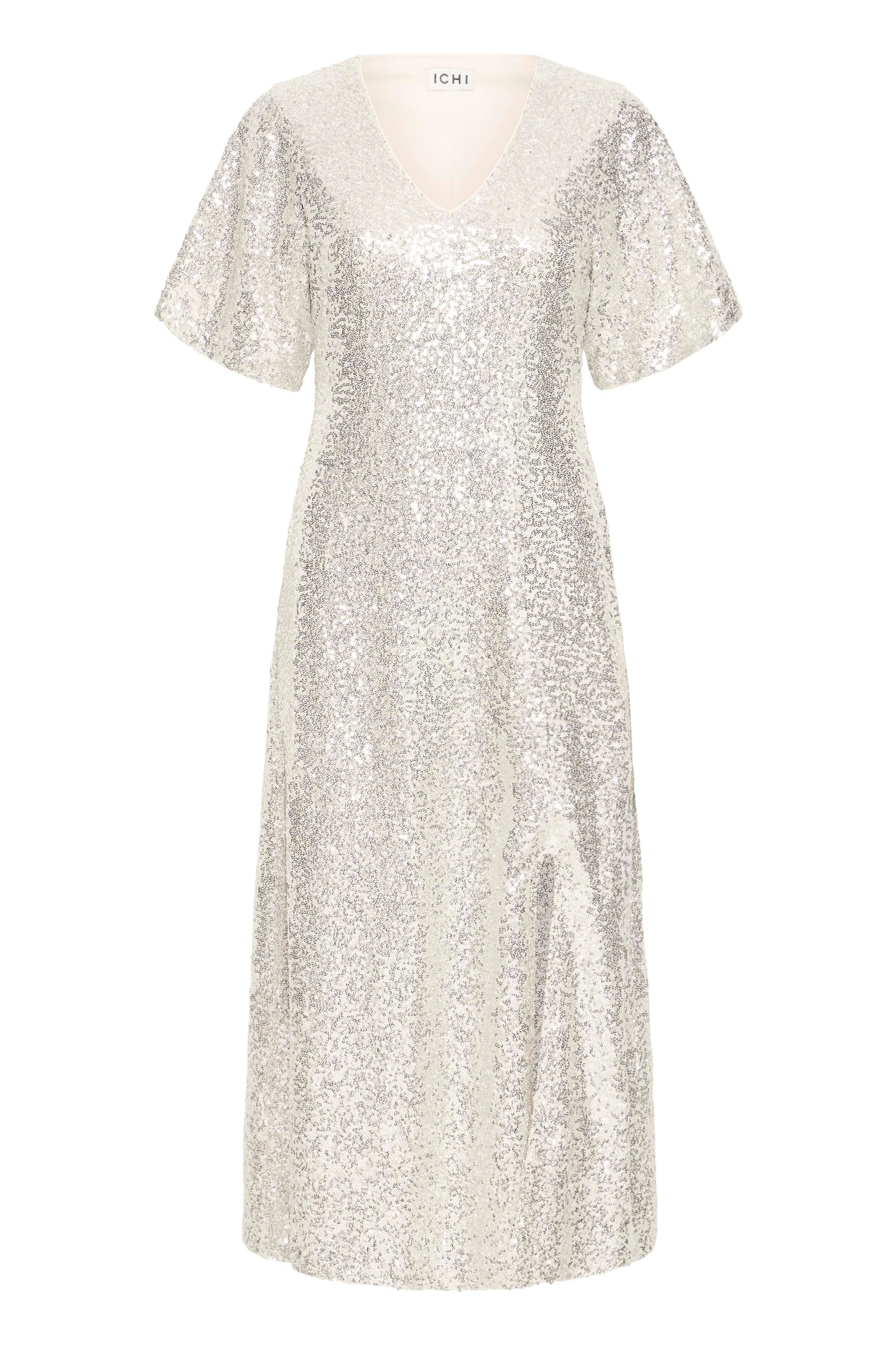 • IHFAUCA DR3 kjolen fra ICHI er et GLIMRENDE bud på kjolen til din næste begivenhed. Midi-længden og v-udskæringen skaber en flatterende silhuet, mens de korte ærmer giver komfort og bevægelsesfrihed. En sideslids tilføjer et strejf af allure.