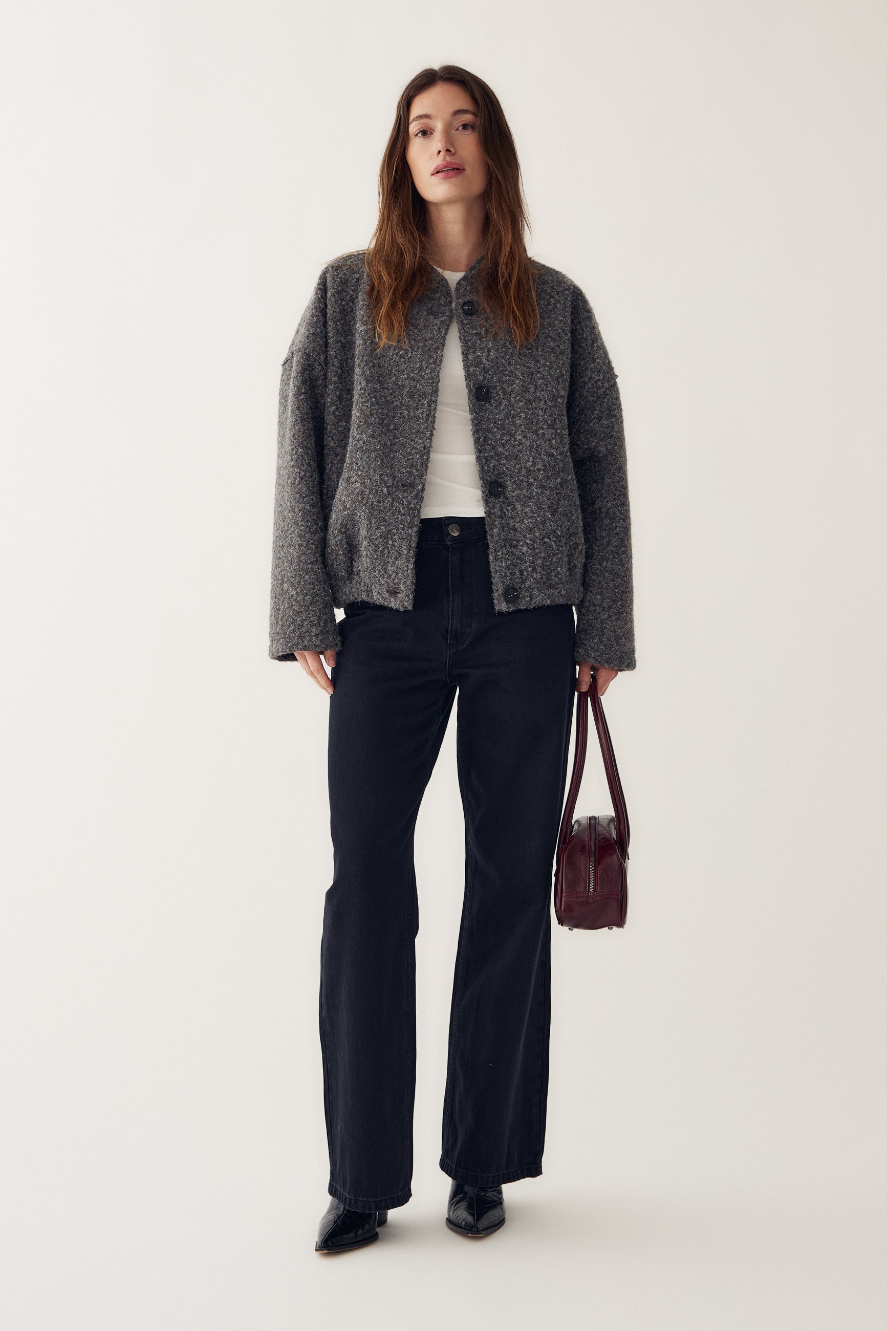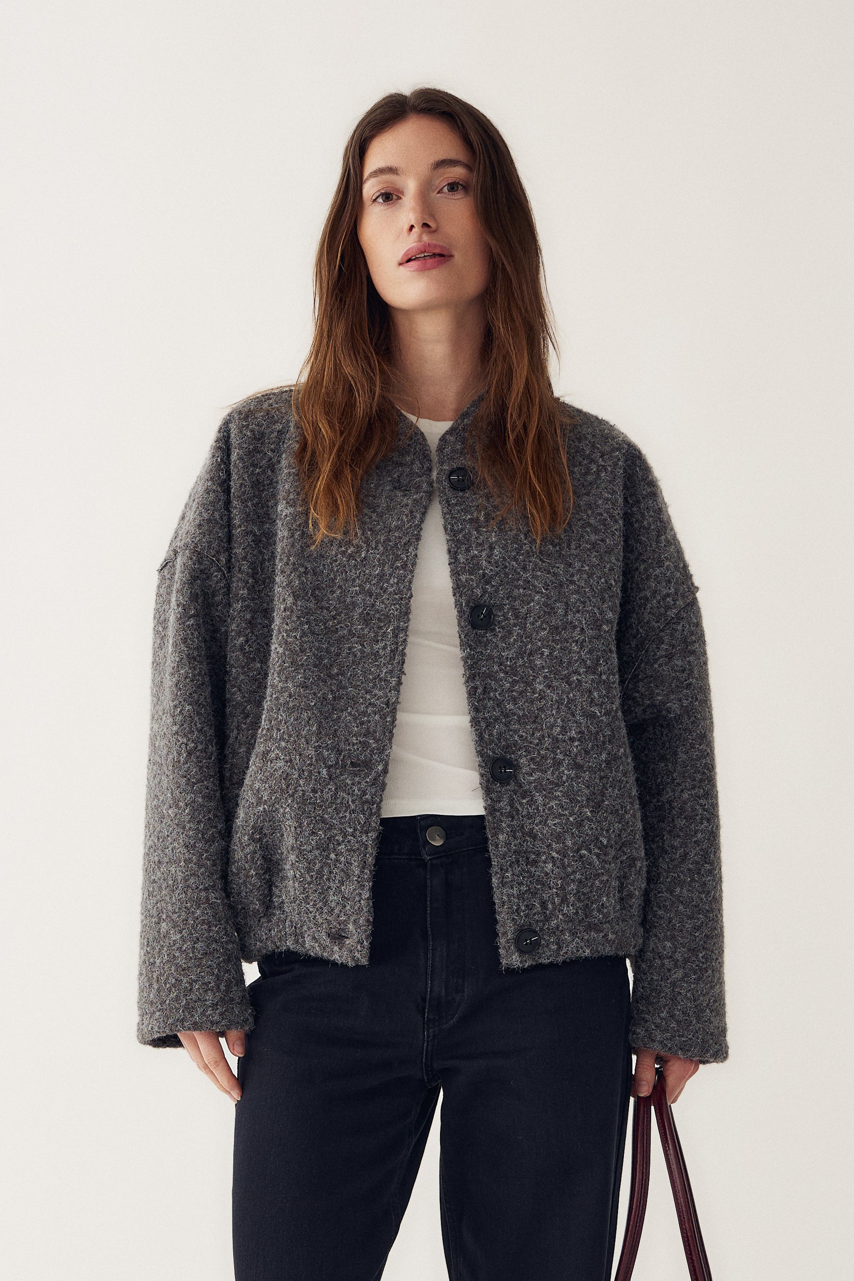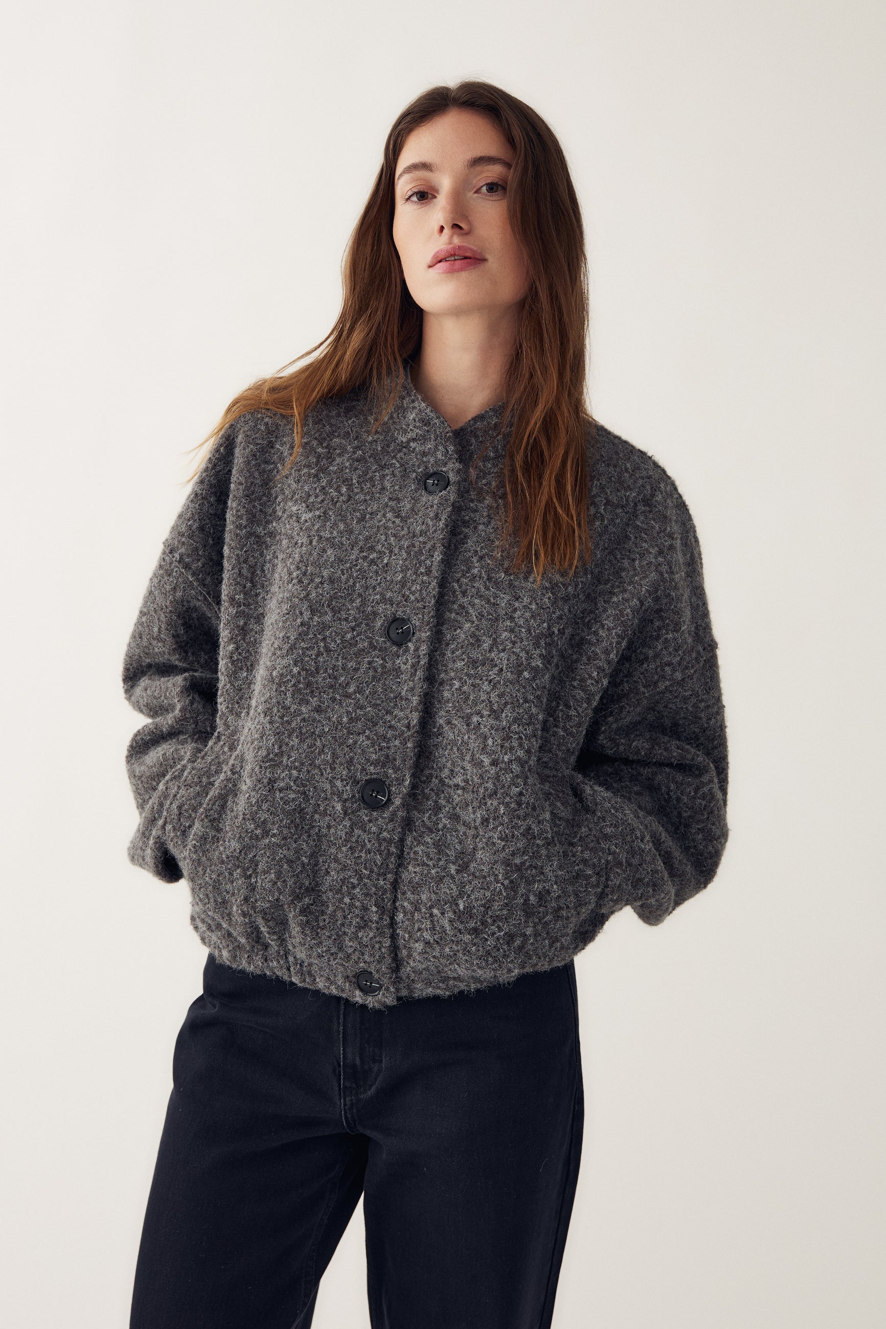 MARNIE jakke fra NOELLA er en lækker jakke med knaplukning, rund hals og løs pasform i en blød, struktureret kvalitet – ideel til et afslappet og stilrent look. Den har elastik for neden, hvilket giver en flot rynke-effekt.